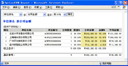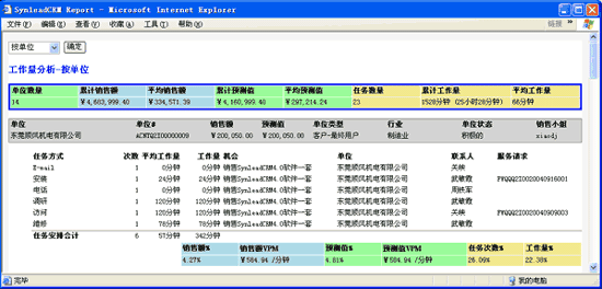 例如,在SynleadCRM"合同"工作界面,過(guò)濾出所需的定單記錄集,可生成以下復(fù)雜報(bào)表