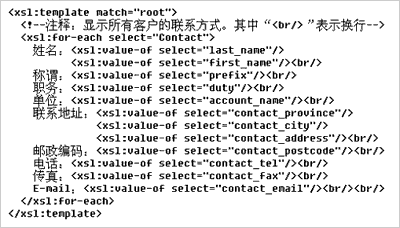 XSL采用結(jié)構(gòu)化描述。XSL遵循XML語(yǔ)法規(guī)范,結(jié)構(gòu)性、可讀性較強(qiáng)。經(jīng)過(guò)短時(shí)間學(xué)習(xí),渠道增值伙伴乃至用戶就可以掌握XSL描述要領(lǐng),改寫或新建XSL模板,例如定制客戶化的報(bào)表。