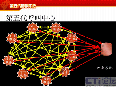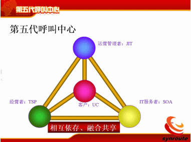 這幾方面相互制約,相互影響,相互關(guān)聯(lián),這是我們提的相互依存,融合共享,這是它的核心,這幾個(gè)方面相互作用。今天短暫的時(shí)間也只能講到IT服務(wù)者通過(guò)SOA在第五代呼叫中心如何支持其它方面的要求。
