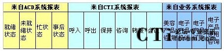 b)其它時間,報表在CTI中,各種統(tǒng)計指標(biāo)都有,每天、每月、每季度、每年、按組、按技能,平均、總計、總合、最大、最小數(shù)據(jù)比較的表格、圖表,一應(yīng)俱全;