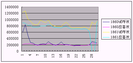 通過(guò)對(duì)各曲線均值與峰值的對(duì)比,也可以清晰的看出,新1861系統(tǒng)的上線不僅有效的提高了1861熱線的接通率,增大了系統(tǒng)容量,而且對(duì)1860系統(tǒng)也進(jìn)行了大大的緩解。