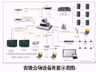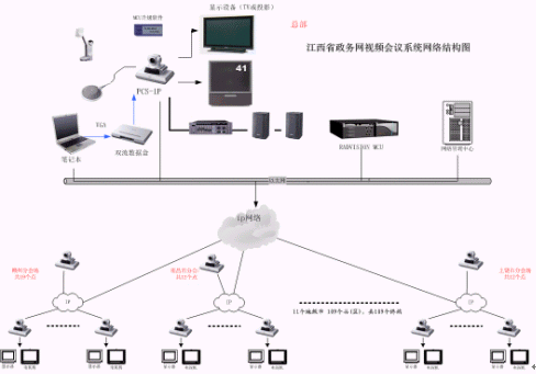 整個(gè)視頻會議系統(tǒng)擬在11個(gè)設(shè)區(qū)市會議電視管理中心和137個(gè)分會場(全省137個(gè)縣、區(qū)),共 120 個(gè)點(diǎn)。所有會場均采用SONY PCS-1設(shè)備,其中包括:南昌市12點(diǎn)、九江市14點(diǎn)、吉安市13點(diǎn)、景德鎮(zhèn)市4點(diǎn)、新余市4點(diǎn)、贛州市19點(diǎn)、宜春市10點(diǎn)、撫州市11點(diǎn)、萍鄉(xiāng)市6點(diǎn)、上饒市12點(diǎn)、鷹潭市4點(diǎn)等共11個(gè)地級市 137個(gè)縣(區(qū)), 其中在會議電視管理中心,和各級市的中心點(diǎn)放置PCS-DSB數(shù)據(jù)盒,用于培訓(xùn)中傳送雙流。