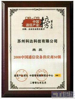 2009中國通信產業(yè)榜 科達入圍“2008中國通信設備供應商50強”