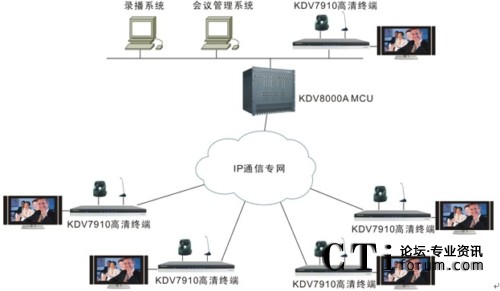 各會場配置KDV7910高清視頻終端,該終端是業(yè)內(nèi)第一款真正支持1080P的高清視頻會議終端,具有非凡的畫面質(zhì)量、音頻效果和卓越的雙流協(xié)作能力。各終端與中心點MCU之間通過全省財政IP通信專網(wǎng)相連。
