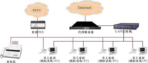 。。某中小企業(yè),無分支機(jī)構(gòu),現(xiàn)時有一個由傳統(tǒng)PBX構(gòu)建的電話系統(tǒng)和一個以太局域網(wǎng),兩者相互獨(dú)立,局域網(wǎng)通過一臺代理服務(wù)器用以太網(wǎng)或ADSL方式接入Internet。企業(yè)的語音通信由電話系統(tǒng)實(shí)現(xiàn);員工的日常工作需要使用計(jì)算機(jī)以及多種局域網(wǎng)和Internet服務(wù)(如文件共享、網(wǎng)絡(luò)打印、瀏覽網(wǎng)頁、收發(fā)郵件等),這些服務(wù)通過局域網(wǎng)提供,目前,在企業(yè)的經(jīng)營管理上還沒有應(yīng)用相關(guān)的業(yè)務(wù)系統(tǒng)(如工作流、ERP、CRM等)。