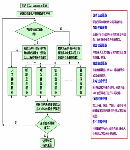 - 提供自動聽取錄音信息、索取傳真文件、發(fā)送或接收傳真、語音留言等服務(wù);