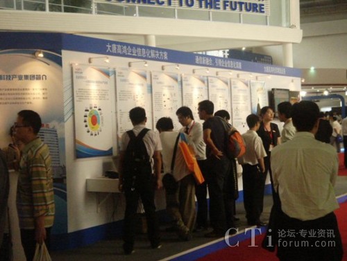 通過”融合通訊系統(tǒng)解決方案”、“中小企業(yè)信息化解決方案”等展板與演示,可以看出大唐高鴻的企業(yè)信息化解決方案可以并且正在全面應(yīng)用于政府、軍隊煤礦、電力、公安、鐵路、公路、水力等企業(yè)行業(yè)。