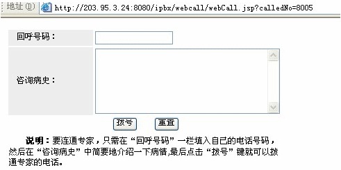 Call直接與專家坐席通話,與專家溝通自己的病情和對藥物的需求,尋求專家的指導(dǎo)和建議。而沒有耳機和麥克風(fēng)配置的消費者則可以輸入自己家中或者手機的號碼,享受回呼服務(wù),一樣不用支付電話費就得到企業(yè)專家的電話服務(wù)。