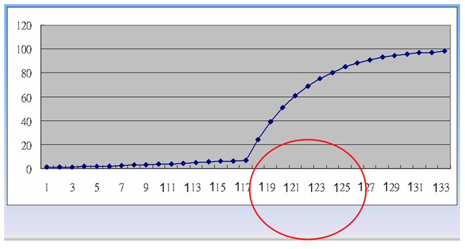 這個(gè)呼叫中心從一只貓沒(méi)有,一直增加到117人之前,服務(wù)水平幾乎連一動(dòng)也不動(dòng),但只要人數(shù)增加到118人以后,服務(wù)水平突然猛烈上升,一直到128人才緩慢下來(lái),這時(shí)服務(wù)水平已經(jīng)上升到93,后面的變化就跟117人之前很像,不管再增加多少人,服務(wù)水平的增加都非常有限。