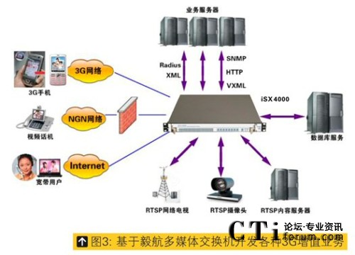 隨著中國3G用戶的日益增多,基于3G網(wǎng)絡(luò)的增值業(yè)務(wù)也日益受到各大運(yùn)營商重視,而且運(yùn)營商也寄希望于形形色色的增值業(yè)務(wù)能夠帶動(dòng)3G用戶的增長,針對這種狀況以及國內(nèi)三種運(yùn)營商制式(TD-SCDMA、WCDMA、CDMA2000),毅航發(fā)布專門針對3G增值業(yè)務(wù)或2G-3G混合增值業(yè)務(wù)的真正一體化開發(fā)平臺,基于此平臺開發(fā)者無需關(guān)心3G網(wǎng)絡(luò)接口、3G網(wǎng)絡(luò)制式、3G網(wǎng)絡(luò)信令及3G視頻編解碼而直接開發(fā)3G業(yè)務(wù)流程即可,是目前國內(nèi)外最簡單、單機(jī)承載容量最大的3G增值業(yè)務(wù)開發(fā)平臺,是在毅航通信 iSX4000 通用業(yè)務(wù)平臺的基礎(chǔ)上增加視頻模塊即可將原來在2G上的所有應(yīng)用平滑升級到3G,升級周期只需要1-2周即可,因此基于毅航增值業(yè)務(wù)平臺的3G示范應(yīng)用也很快會在中國三個(gè)不同制式的3G網(wǎng)絡(luò)上開通。