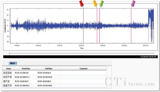 關(guān)鍵詞組字符串設(shè)定,可透過系統(tǒng)調(diào)配建置學習性的語料庫,當收集可比對的關(guān)鍵詞錄音數(shù)量具規(guī)模時,可達到一定的辨識度信心水平,同時透過Web錄音調(diào)閱畫面,在撥放符合關(guān)鍵詞音檔時,可提供標示、注記、搜尋功能及音文件波形呈現(xiàn)關(guān)鍵詞的落點以及情緒分析變化,有效管理呼叫中心的關(guān)鍵議題,降低客訴率,提升客戶滿意及服務水平。
