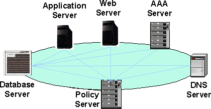 1) 數(shù)據(jù)庫與Internet分隔開:核心數(shù)據(jù)庫放在內(nèi)部局域網(wǎng);Web Server,AAA Server及Policy通過內(nèi)部局域網(wǎng)與數(shù)據(jù)庫進行通訊。
