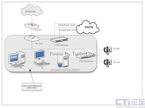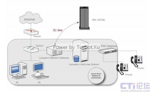 眾所周知,我們?cè)谶M(jìn)行語(yǔ)音通信時(shí),最為重要的就是語(yǔ)音的質(zhì)量,有人會(huì)提出,這種以IP傳送語(yǔ)音的方式不能保證語(yǔ)音質(zhì)量,當(dāng)然,這種擔(dān)憂(yōu)是有所必要的,但如果你仔細(xì)看看上面的拓?fù)鋱D后會(huì)發(fā)現(xiàn),這個(gè)方案中用到IP的地方都是在局域網(wǎng)中處理的,并沒(méi)有牽扯到Internet