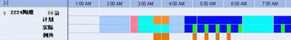 如圖,通過與PBX、CTI系統(tǒng)的接口,排班系統(tǒng)獲取座席的實(shí)時(shí)狀態(tài)信息,如登錄、接聽、話后處理、登出等,并以不同的顏色進(jìn)行表示,與計(jì)劃的班次安排進(jìn)行比對(duì),從而監(jiān)控到座席的遵時(shí)例外(非遵時(shí))。通過這種方式,座席的實(shí)時(shí)狀態(tài)變化能夠及時(shí)的得到監(jiān)控,便于管理人員精確的監(jiān)控遵時(shí),同時(shí),也把班長(zhǎng)從遵時(shí)管理中部分解脫出來。