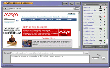 作為電話會(huì)議的補(bǔ)充,會(huì)議主席可以建立基于web的應(yīng)用。通過這樣的web接口,會(huì)議主席和與會(huì)人員不僅看到與會(huì)人員的狀態(tài),還可以設(shè)置聽眾只聽,聽和說,可以看到web界面的權(quán)限。web