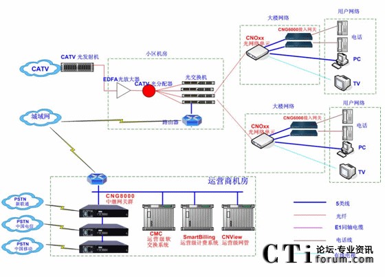 - 用戶樓道內(nèi)的采用世紀(jì)網(wǎng)通CNG3000(16口),CNG6000(32口)接入級網(wǎng)關(guān)設(shè)備,通過電話線連接到每個用戶。