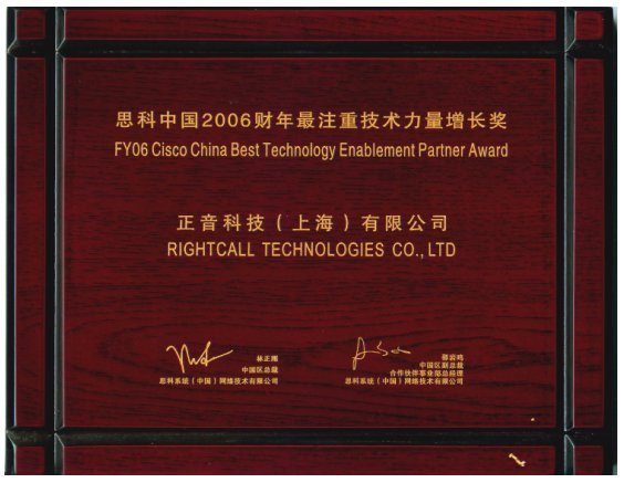 正音科技榮獲“思科中國2006財(cái)年最注重技術(shù)力量增長獎(jiǎng)”