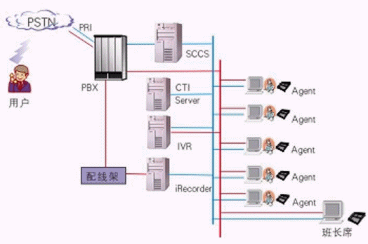 其中交換機(jī)采用Meridian,軟件平臺采用浩豐時(shí)代的系列解決方案:自動語音應(yīng)答系統(tǒng)IVR2000®,CTI平臺VOM®,坐席應(yīng)用系統(tǒng)iAgent®和數(shù)字錄音監(jiān)聽系統(tǒng)iRecorder?。該系統(tǒng)既可以利用強(qiáng)大的呼入排隊(duì)功能處理客戶請求,也可以利用呼出功能為客戶提供主動服務(wù)。