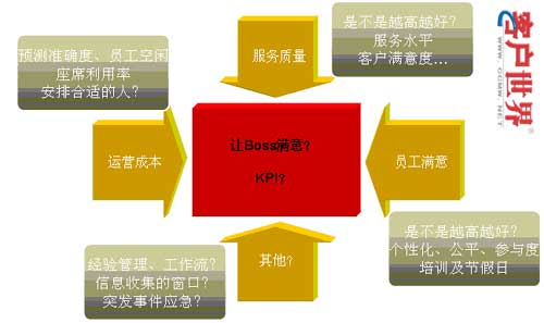 所以,我們認為呼叫中心的運營解決方案,應(yīng)該綜合協(xié)調(diào)人力資源管理、話務(wù)預(yù)測、自動排班、績效考評、話務(wù)分析、現(xiàn)場管理、實時預(yù)警等各個現(xiàn)場管理要素。各個要素之間即是相互獨立,又相互關(guān)聯(lián)的,系統(tǒng)通過設(shè)置目標(biāo)值,達到管理目標(biāo)的均衡,這個平衡,從最核心的體現(xiàn)來看,就是一個完整的KPI體系中各個指標(biāo)的實現(xiàn)。