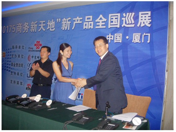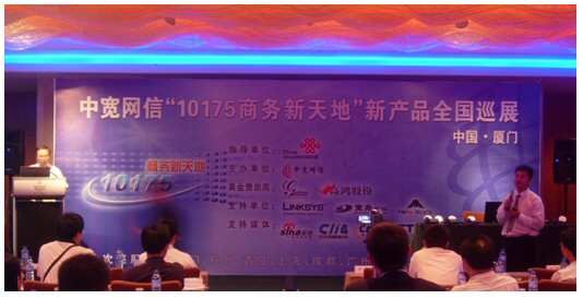 2007年6月27日,中寬網(wǎng)信”101756商務(wù)新天地”新產(chǎn)品全國巡展廈門站在廈門喜來登酒店勝利召開。會議的主旨是向中小企業(yè)及呼叫中心用戶推出個性化的通信增值服務(wù)方案,提高企業(yè)競爭力;同時為投資者提供投資小回報快的投資項目。此次會議得到了中國聯(lián)通的大力支持,廈門聯(lián)通數(shù)據(jù)部副總監(jiān)林長春先生表示中國聯(lián)通十分看好中國電信融合市場的巨大產(chǎn)業(yè)機會,有信心與中寬網(wǎng)信真誠合作,利用雙方各自平臺優(yōu)勢,深度合作,資源互補,共同參與激烈的電信市場競爭。