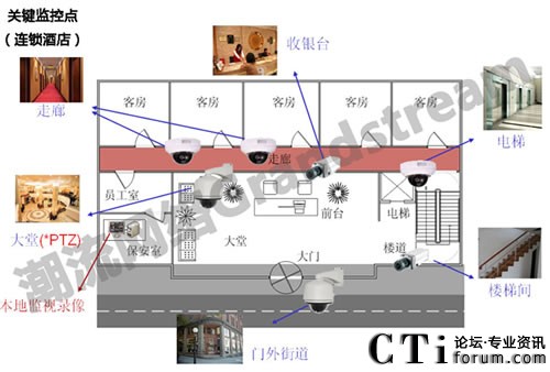 采用潮流網(wǎng)絡提供的網(wǎng)絡監(jiān)控平臺來加強管理和提高各個門市的服務質(zhì)量。由于是連鎖酒店,所以高層主管無法時時刻刻在各個酒店內(nèi)管理,讓高層對于酒店內(nèi)的營運管理十分頭痛,所以當主管在裝設監(jiān)控系統(tǒng)時要求希望達到透過Internet的集中監(jiān)控、分散管理,監(jiān)控中心的操作平臺方面希望能使用人性化的界面簡單不繁瑣。潮流網(wǎng)絡的監(jiān)控系統(tǒng)可展開樹狀目錄進行不同地域的階層式管理,高層主管可透過網(wǎng)絡進行“跨地域、跨網(wǎng)域”的實時監(jiān)看,隨時可掌控酒店內(nèi)的營運狀況,無需再親自到酒店。