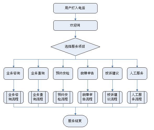 2)業(yè)務(wù)查詢(xún):用戶(hù)可通過(guò)受理人員或自動(dòng)語(yǔ)音應(yīng)答系統(tǒng)根據(jù)用戶(hù)要求從數(shù)據(jù)庫(kù)查詢(xún)資料,然后通過(guò)語(yǔ)音方式播報(bào)或送到用戶(hù)指定傳真機(jī)或其他終端設(shè)備上。應(yīng)考慮以后用web方式查詢(xún)氣費(fèi)等數(shù)據(jù),以不動(dòng)及主體設(shè)備方式平滑升級(jí)。