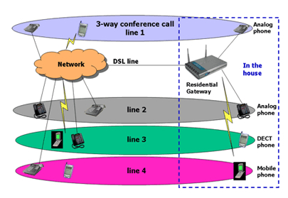 下一代住宅網(wǎng)關(guān)提供領(lǐng)先的數(shù)據(jù)能力,且還可擔(dān)當(dāng)家庭語音和數(shù)字通信的中樞。某些住宅網(wǎng)關(guān)將支持用VoIP替換標準普通老式電話服務(wù)(POTS),而其它網(wǎng)關(guān)將提供用于固定移動融合(FMC)的平臺,從而更進一步。這就允許消費者在室外時,利用與常規(guī)移動電話一樣工作、支持Wi-Fi的移動電話通過蜂窩網(wǎng)絡(luò)接打電話和接入互聯(lián)網(wǎng)。當(dāng)消費者回屋后,電話會感知這一變化并與無線局域網(wǎng)(WLAN)連通,然后可將其當(dāng)無繩VoIP電話使用。市場研究公司iSupply預(yù)計,2006年售出了2,200萬部具有Wi-Fi功能的移動電話,到2010年,該數(shù)字將達2.85億部。