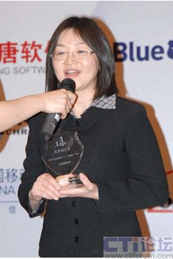 Amdocs中國(guó)市場(chǎng)經(jīng)理王玫女士在頒獎(jiǎng)現(xiàn)場(chǎng)