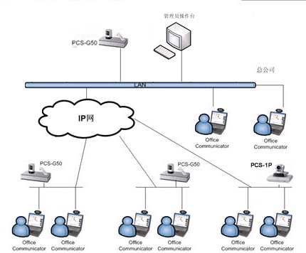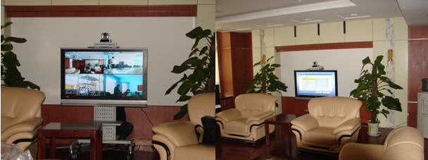 在宜興公司大樓二樓的貴賓室內(nèi),配置一套SONY PCS-1P視頻會議終端;并在此終端內(nèi)安裝了支持6點多點會議的H.323內(nèi)置多點MCU。