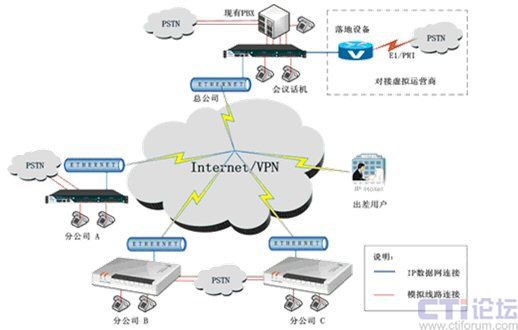 利用公共寬帶網(wǎng)絡(luò),實(shí)現(xiàn)總公司和各個分公司之間IP電話互通功能,從而免除總公司和各個分公司內(nèi)部溝通的通訊市話和長話費(fèi)用。