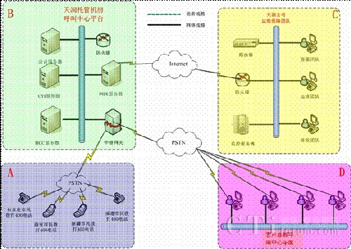 方案二:400電話+托管呼叫中心平臺(tái)+坐席統(tǒng)一部署在總部
