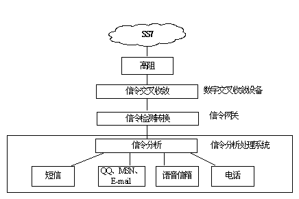 數(shù)字中繼高阻適配器通過(guò)高阻搭接的方式來(lái)避免對(duì)原鏈路產(chǎn)生影響;數(shù)字交叉收斂設(shè)備起信令收斂和采集作用,提取含有信令鏈路的信令時(shí)隙,組合成相對(duì)應(yīng)的PCM碼流并轉(zhuǎn)發(fā)到信令分析網(wǎng)關(guān);信令分析網(wǎng)關(guān)從底層檢測(cè)相應(yīng)的信令信息,收集并通過(guò)TCP/IP的方式轉(zhuǎn)發(fā)給信令分析系統(tǒng);信令分析系統(tǒng)在收到信令包之后,按業(yè)務(wù)邏輯進(jìn)行分析和判斷,產(chǎn)生相應(yīng)的動(dòng)作。