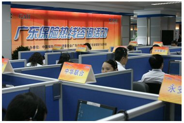 2007年6月23日下午,由中國電信廣東公司和廣東保險監(jiān)督管理局合作舉辦的4008991288廣東保險業(yè)電話咨詢熱線活動在中國電信廣州分公司客戶服務(wù)中心舉行。省保監(jiān)局、省保險協(xié)會等保險監(jiān)管行業(yè)人員進行現(xiàn)場監(jiān)聽,廣東省內(nèi)39家保險公司的44位總經(jīng)理親自接聽市民的咨詢或投訴,其他保險資深專家接受市民保險業(yè)務(wù)咨詢。兩小時的熱線活動成功接通1122個電話,并當場解決和答復(fù)856個咨詢和投訴問題。