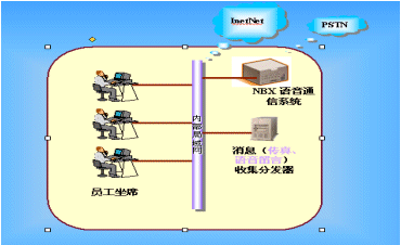 3Com NBX統(tǒng)一消息系統(tǒng)將不同的信息技術(shù)和網(wǎng)絡(luò)結(jié)合起來(lái),提供了一個(gè)語(yǔ)音郵件獲取接口,利用該接口,可以將話(huà)機(jī)的語(yǔ)音留言、傳真等轉(zhuǎn)發(fā)到用戶(hù)的辦公(或個(gè)人)電子信箱中,而使用者只需通過(guò)單一的終端設(shè)備,比如PC或電話(huà),就能夠在任何時(shí)間、任何地點(diǎn)接收和獲取不同來(lái)源的信息(如:聲音、傳真和電子郵件)。