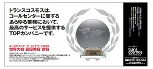 transcosmos公司創(chuàng)始于1966年,總部設(shè)在東京,致力于信息外包產(chǎn)業(yè)的發(fā)展,現(xiàn)有人員規(guī)模25000多人,在全世界擁有30多個分支機構(gòu),是日本最大且最著名的外包客戶互動服務(wù)專家。其潛心打造的Marketing Chain Management概念,通過科學(xué)整合多渠道通信方式幫助客戶優(yōu)化商業(yè)流程、擴大銷售額、降低成本、提升客戶滿意度,以一項專利技術(shù)成功運用于世界500強企業(yè)客戶。