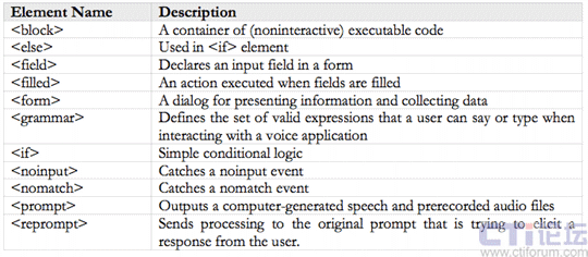 表 1. 本示例中用到的VoiceXML 標(biāo)簽
