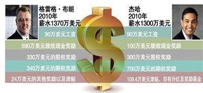 摩托羅拉移動(dòng)CEO杰哈主要負(fù)責(zé)摩托羅拉消費(fèi)者、家庭及智能手機(jī)產(chǎn)品,他去年共獲得超過(guò)1300萬(wàn)美元薪酬,比2009年的380萬(wàn)美元有大幅提高。他的薪酬包括90萬(wàn)美元基本工資、100萬(wàn)美元績(jī)效現(xiàn)金獎(jiǎng)勵(lì)、300萬(wàn)美元股權(quán)獎(jiǎng)勵(lì)、700萬(wàn)美元的期權(quán)獎(jiǎng)勵(lì)、39萬(wàn)美元的津貼和42.6萬(wàn)美元的自有分紅及27.8萬(wàn)美元激勵(lì)獎(jiǎng)金。