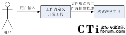 IVR系統(tǒng)的過(guò)程定義工具是一個(gè)可視化的軟件工具,它主要用于定義工作流模型中各個(gè)活動(dòng)之間的關(guān)系[22]。工作流程過(guò)程定義向用戶(hù)提供對(duì)實(shí)際業(yè)務(wù)處理過(guò)程分析、建模的手段。其輸入輸出可以用圖3.2表達(dá):