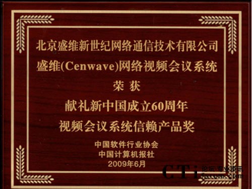 在剛剛結(jié)束的第十三屆中國(guó)國(guó)際軟件博覽會(huì)(以下簡(jiǎn)稱軟博會(huì))上,盛維(Cenwave)新世紀(jì)應(yīng)邀出席了2009中國(guó)軟件服務(wù)業(yè)發(fā)展高峰論壇暨開幕式,并且核心產(chǎn)品盛維(Cenwave)網(wǎng)絡(luò)視頻會(huì)議系統(tǒng)榮膺“獻(xiàn)禮新中國(guó)成立60周年•中國(guó)軟件行業(yè)視頻會(huì)議系統(tǒng)信賴產(chǎn)品獎(jiǎng)”。這一經(jīng)過企業(yè)申報(bào)、候選投票、專家評(píng)審、發(fā)布頒獎(jiǎng)等嚴(yán)格流程評(píng)選出來的獎(jiǎng)項(xiàng),傳達(dá)了用戶的真實(shí)心聲,反映了盛維(Cenwave)網(wǎng)絡(luò)視頻會(huì)議系統(tǒng)已經(jīng)被越來越多的客戶所信任。