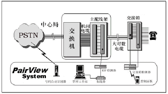8. 可為電信公司帶來(lái)良好的收益和長(zhǎng)遠(yuǎn)的經(jīng)濟(jì)利益 本地環(huán)路測(cè)試系統(tǒng)(PairView)的構(gòu)成如下: