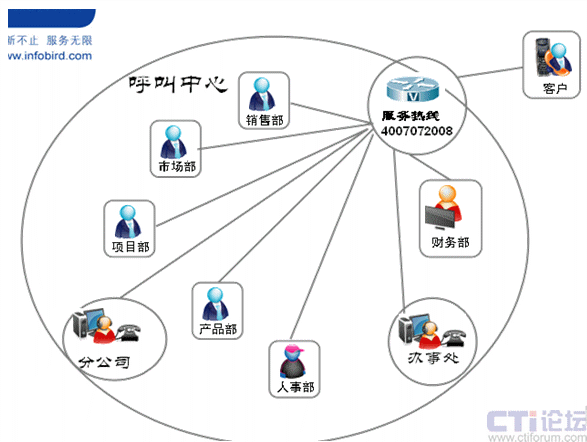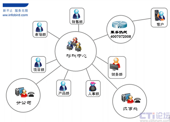 呼叫中心可以與企業(yè)的財(cái)務(wù)系統(tǒng)、OA系統(tǒng)、ERP系統(tǒng)、CRM系統(tǒng)等進(jìn)行整合,幫助企業(yè)輕松實(shí)現(xiàn)整個(gè)業(yè)務(wù)流程的管理、企業(yè)內(nèi)外溝通過程的管理。每個(gè)流程、每個(gè)節(jié)點(diǎn)都是可以被量化,可以被審查和糾正的。呼叫中心部門已經(jīng)不再局限于對(duì)客戶的服務(wù)提供,已經(jīng)完全成長(zhǎng)為一個(gè)提升企業(yè)效率和運(yùn)營(yíng)能力的服務(wù)管理部門。通過下表我們看到呼叫中心在組織中的職能架構(gòu)發(fā)生變化,已經(jīng)完全成為與客戶溝通的最重要的部門之一。