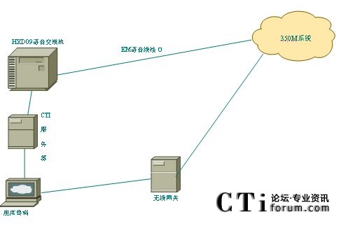 HXD09交換機(jī)通過EM接口與350M的語音線連接,當(dāng)需要呼叫某一無線終端時(shí),由座席端發(fā)起呼叫請求到無線網(wǎng)關(guān),當(dāng)獲取到無線網(wǎng)關(guān)返回的語音通道后,HXD09交換機(jī)將和350M系統(tǒng)對應(yīng)的語音通道連接起來,實(shí)現(xiàn)有線座席和無線終端之間的通話,并可對通話進(jìn)行錄音;座席也可插入到無線終端或者某一集群之間,實(shí)現(xiàn)監(jiān)聽或者插話,這一過程同樣可以全程錄音。