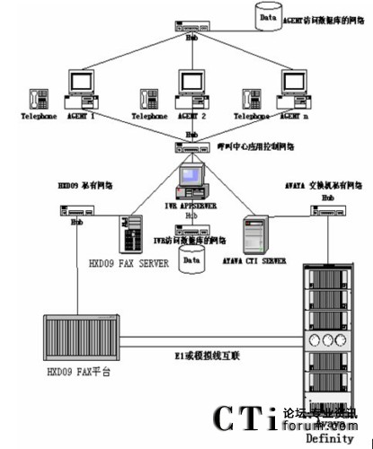 根據(jù)客服系統(tǒng)的容量,坐席多特點(diǎn),一般都采用國外品牌交換機(jī)做為接入設(shè)備,用HXD09設(shè)備作FAX或IVR系統(tǒng)?头臉I(yè)務(wù)主要為語音和傳真。HXD09系統(tǒng)在傳真和語音處理處理上在國內(nèi)產(chǎn)品的技術(shù)和價(jià)格上都有巨大優(yōu)勢(shì)。