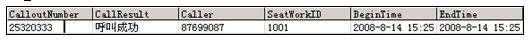可以通過預(yù)測撥號識別各類呼叫結(jié)果,如:忙音、空號、或無人接聽等,只將有效的通話轉(zhuǎn)接至業(yè)務(wù)人員,同時將呼叫結(jié)果寫入數(shù)據(jù)庫UT_IMCALL表(如下圖), 備下次呼叫參考, 同時記錄了工號及呼出主叫, 當(dāng)該客戶(25320333)呼入時, CTI將自動導(dǎo)航該客戶(被叫號碼)到對應(yīng)的業(yè)務(wù)員工號(1001)和主叫號碼(87699087), 保證客戶(25320333)和業(yè)務(wù)員(1001)一對一服務(wù)。