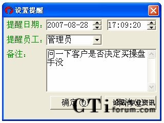 選定記錄并單擊新提醒,可以設(shè)定新的對(duì)該客戶的回訪時(shí)間。