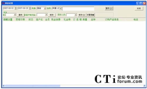 注:對(duì)于登記日期一直到客戶名這一段條件的查詢(即上圖中所有的那些查詢條件),都得點(diǎn)擊客戶名欄對(duì)應(yīng)的那個(gè)查找按鈕才能進(jìn)行有效的查找,否則若點(diǎn)擊其它按鈕(姓名電話直接檢索對(duì)應(yīng)的查找除外),都會(huì)提示“請(qǐng)輸入****”這種錯(cuò)誤信息。而點(diǎn)擊最后一個(gè)查找,也是無(wú)效的,會(huì)轉(zhuǎn)到客戶管理中空白信息欄(即什么也查不到)。