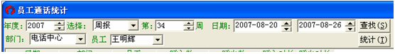 默認(rèn)的情況下是日?qǐng)?bào),下面以統(tǒng)計(jì)2007年度第34周,電話中心的員工王明輝為例: