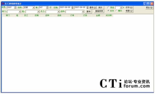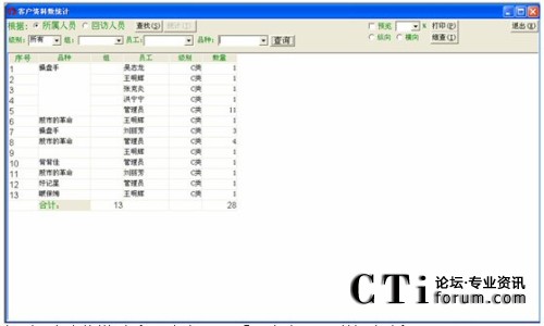可以對(duì)進(jìn)線進(jìn)行日統(tǒng)計(jì)、周統(tǒng)計(jì)、月統(tǒng)計(jì)、季度統(tǒng)計(jì)、年度統(tǒng)計(jì),并分別可對(duì)部門(mén)、員工、品種等進(jìn)行組合式的查詢。