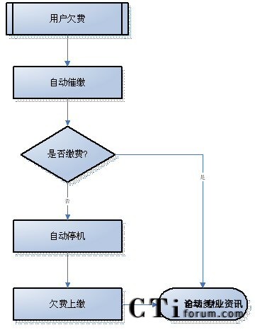 - 支持對(duì)預(yù)付費(fèi)用戶催繳:該類用戶采用先交費(fèi),后打電話,預(yù)付費(fèi)用完即視為欠費(fèi),系統(tǒng)開始催繳。一旦用戶到營業(yè)窗口補(bǔ)交話費(fèi),系統(tǒng)即停止催繳;