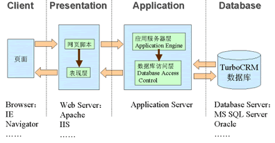 為了滿足移動辦公和分布式管理的需求,CRM系統(tǒng)將更多采用基于Browser-Server架構(gòu)的多層結(jié)構(gòu)。B/S結(jié)構(gòu)的特點是在客戶端使用標準的Web頁面瀏覽器(如Internet Explorer等),不需安裝特殊的應(yīng)用程序,減少了升級和維護的難度;所有的業(yè)務(wù)數(shù)據(jù)都保存在Server端,確保了數(shù)據(jù)的安全;在通訊方面,由于使用標準的HTTP協(xié)議,使得系統(tǒng)可以輕松的實現(xiàn)移動辦公和分布式管理。另外為了系統(tǒng)功能的可擴展性,應(yīng)該采用將數(shù)據(jù)庫、應(yīng)用層及表現(xiàn)層分離的多層結(jié)構(gòu)。獨立的數(shù)據(jù)庫層便于支持多種數(shù)據(jù)庫系統(tǒng),將實現(xiàn)企業(yè)邏輯的應(yīng)用層獨立使業(yè)務(wù)邏輯的更新和擴展更為方便,而當需要支持手機、PDA等新的客戶端設(shè)備時只要對表現(xiàn)層進行擴充就可以實現(xiàn)。同時,這種多層結(jié)構(gòu)也可以采用負載均衡與集群等技術(shù)實現(xiàn)系統(tǒng)的高可用性和性能的平滑擴展。